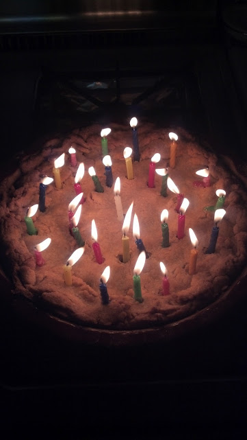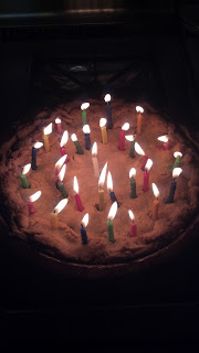 That's a whole lot of wax on my pie.... I even had some candles that had burned all the way down and scorched the crust (the black spot in the upper left corner). I guess that's what you get when you get "old" lol.